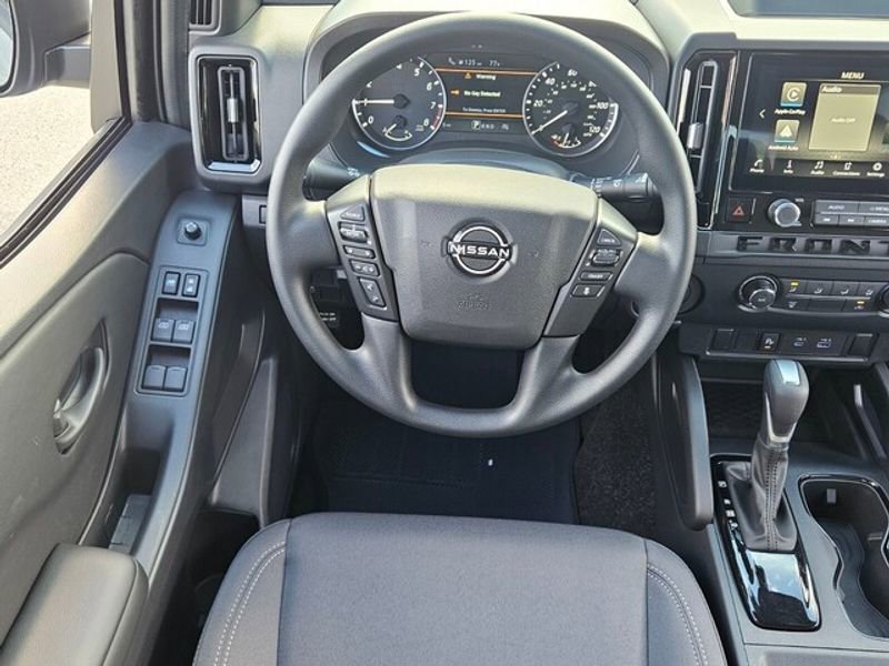 The state of the art park assist system will guide you easily into any spot. This 2026 Nissan Frontier 's Lane Departure Warning keeps you safe by alerting you when you drift from your lane. This vehicle offers Apple CarPlay for seamless connectivity. See what's behind you with the back up camera on the vehicle. This small pickup comes equipped with Android Auto for seamless smartphone integration on the road. This Nissan Frontier has a V6, 3.8L high output engine. This model projects refinement with a racy metallic gray exterior. This unit is rear wheel drive. Easily set your speed in the vehicle with a state of the art cruise control system. Increase or decrease velocity with the touch of a button. Help alleviate lower back pain with the driver seat lumbar support in this unit. The vehicle has an automatic transmission. Electronic Stability Control is one of many advanced safety features on this small pickup.