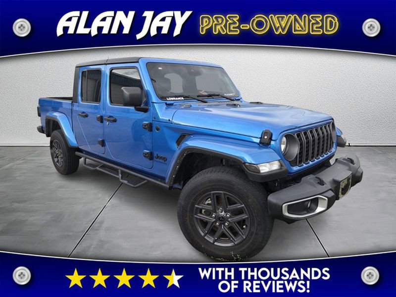 Bluetooth technology is built into this 2024 Jeep Gladiator , keeping your hands on the steering wheel and your focus on the road. Apple CarPlay: Seamless smartphone integration for this Jeep Gladiator - stay connected and entertained on the go! This unit offers Android Auto for seamless smartphone integration. An off-road package is equipped on this 1/2 ton pickup. This model's Forward Collision Warning feature alerts drivers to potential front-end collisions. The vehicle has automated speed control that adjusts to maintain a safe following distance, enhancing highway driving convenience. This 1/2 ton pickup's AutoCheck: 1 owner, assurance of single-owner history for peace of mind. This vehicle has a clean AutoCheck report. See what's behind you with the back up camera on this Jeep Gladiator. This vehicle has a V6, 3.6L high output engine. This 2024 Jeep Gladiator shines with an exquisite blue finish. When you encounter slick or muddy roads, you can engage the four wheel drive on it and drive with confidence.