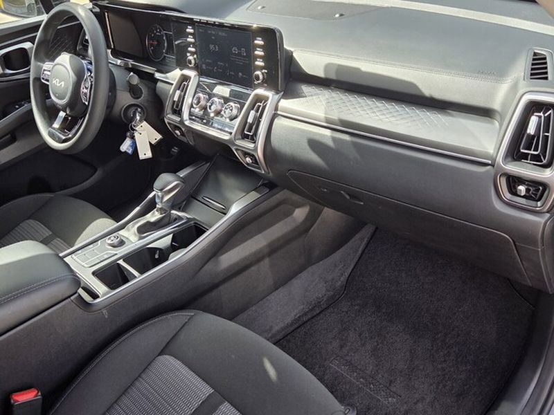 This unit has only one previous owner, verified by AutoCheck. See what's behind you with the back up camera on this vehicle. This Kia Sorento has a clean AutoCheck report, ensuring its impeccable vehicle history. Bluetooth technology is built into this vehicle, keeping your hands on the steering wheel and your focus on the road. Apple CarPlay: Seamless smartphone integration for this 2023 Kia Sorento - stay connected and entertained on the go! This 2023 Kia Sorento employs advanced tech for collision avoidance, enhancing safety on the road. The Kia Sorento stays safely in its lane with Lane Keep Assist. This Kia Sorento comes equipped with Android Auto for seamless smartphone integration on the road. Front wheel drive on this model gives you better traction and better fuel economy. This model gleams with an elegant silver clear coated finish. The vehicle has a 4 Cyl, 2.5L high output engine. Electronic Stability Control is one of many advanced safety features on the Kia Sorento.